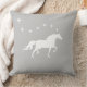 Mooie elegante witte paardensilhouet en sterren op een zilveren grijze achtergrond Lumbar Pillow.
