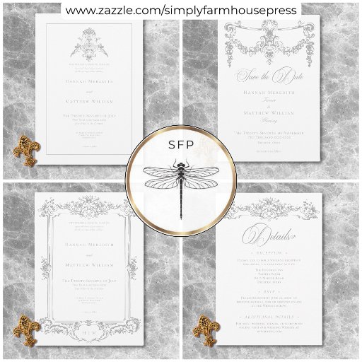 Verhoog uw speciale dag met onze elegante, barokke huwelijksuitnodiging, een meesterwerk van tijdloze elegantie. Met een delicaat lichtzilvergrijze chinoiserie medaillon met een urn en twee cherub engelen op een ongerepte witte achtergrond, straalt dit ontwerp klassieke charme en sophisticatie uit. De eenvoud benadrukt de verfijnde details en creëert een ontwerp dat net zo sierlijk is als je liefdesverhaal. Een enkel dun lijst maakt de elegante look compleet. Perfect voor mensen die traditie en elegantie koesteren. Creëer door Simply Farmhouse Press.
