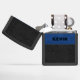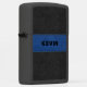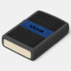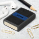Elegante zwart en blauw lederen textuur, gestikte effecten en aangepaste monogram.