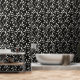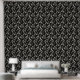 Elegant zwart en crème blad patroon behang