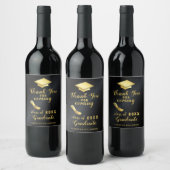 Elegant Zwart en Goud Custom Bedankt Afstuderen Wijn Etiket