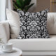 Elegant zwart en wit damast patroon decorator kussen met decoratieve bloemenwervelingen.
