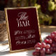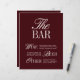 Maak uw receptie compleet met dit elegante minimalistische barbord, ontworpen om uw gasten met stijl te begeleiden. Met een schone ivoren achtergrond met verfijnde serif- en scripttypografie in de diepe bordeaux, geeft dit bord uw selectie van wijn, bier en drank op een tijdloze en verfijnde manier weer. Perfect voor moderne bruiloften, wijngaardrecepties, herfstfeesten of formele avondceremonies, het brengt zowel praktische als elegantie in uw baropstelling. Coördineert naadloos met de volledige "Sabrina" bruiloft briefpapier suite voor een samenhangende look.