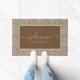 Elegante welkom Doormat met een bruine crème chevron achtergrond. Personaliseer met uw familienaam of tekst.