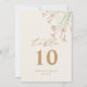 Een vrijstaande tafelnummerkaart versierd met delicate illustraties van wilde bloemen.