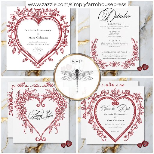 Leg tijdloze romance vast met onze huwelijksuitnodigingen. Dit elegante, vierkante ontwerp heeft een witte achtergrond die lijkt op gebarsten porselein, wat een klassieke Victoriaans antiek charme oproept. In het midden, een prachtige donkerrode chinoiserie bloemenhart houdt uw huwelijksdetails in prachtig typografie. De achterkant toont de eerste initialen van het paar, genesteld in een bijpassend bloemenhart, waardoor een samenhangend en onvergetelijk ontwerp ontstaat. Perfect voor koppels die houden van ouderwetse elegantie met een moderne twist. Creëer door Simply Farmhouse Press.