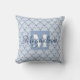 Dit prachtige kussen heeft een klassiek wit damast patroon over een lichtblauwe grijze achtergrond. Het ontwerp is gepersonaliseerd met een monogram initiaal letter en een aanpasbare naam. Perfecte aanvulling op een slaapzaal, slaapkamer of elke kamer waar u een eenvoudige, elegante stijl wilt.