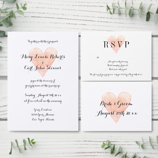 Coral pink watercolor heart wedding theme templateConçu par Mike's Design Studio