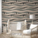 Elegante Pinguïns in Monochrome Waves Grijs & Beig Behang