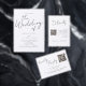 Voor speciale ontwerpbehoeften, voel je vrij om direct in contact te komen met de ontwerper door choosehappystudio@yahoo.com te e-mailen Deze moderne, minimalistische huwelijksuitnodiging heeft een elegant script front. Het speelt met de eenvoud van een zwart-wit typografie ontwerp, het toevoegen van slechts een vleugje paarse kleur. In de achterkant van de uitnodiging kunt u uw bruiloft website informatie en een QR-code voor uw gasten toe te voegen om te scannen. Het is de perfecte keuze voor koppels die schone en moderne elegantie waarderen.