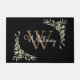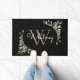 Elegante gepersonaliseerde groene waterverf bloem monogram deurmat met een gouden monogram initiaal met uw naam in een modern wit schrift op een chic zwarte achtergrond. Ontworpen door Thisisnotme©