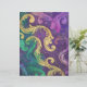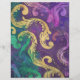 Dit veelzijdige plakboekpapier heeft een levendig en ingewikkeld ontwerp dat perfect is voor een verscheidenheid aan projecten, vooral die met een Mardi Gras-thema. De voorkant van het papier toont een rijk tapijt van wervelingen in gouden, groene, paarse en magenta tinten, tegen een diep paarse achtergrond. De bloeit en delicate stippen creëer een gevoel van beweging en feestelijkheid, die doet denken aan de levendige en kleurrijke sfeer van Mardi Gras feesten. Dit papier is ideaal voor ambachtslieden, scrapbookers en doe-het-zelvers die een vleugje elegantie en feestelijkheid aan hun projecten willen toevoegen. Het kan worden gebruikt voor het maken van wenskaarten, feestuitnodigingen, decoratieve accenten of andere creatieve inspanningen die een gedurfd en feestelijk ontwerp vereisen. De achterzijde van het papier heeft een effen zeeen groene kleur, die een complementaire achtergrond biedt die de algehele esthetiek verbetert en veelzijdigheid biedt voor elk ambacht.