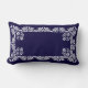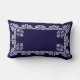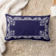 Elegante chique witte kanten vector op marineblauw kussen. Een mooi kussen geweldig voor een gezellige omgeving!