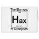 Voel je je bedrogen? De wetenschap heeft een nieuwe chemische stof geïsoleerd in het periodiek systeem - een element van misleiding, afgekort als HAX. Deze geeky substantie wordt in overvloed geproduceerd door tegenstanders van online games. Slang chemie voor de massa's - een mooi cadeau voor gamers of wie dan ook. Woot!