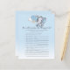 Speel hoe goed ken je de mama-te-zijn, op je baby shower met deze schattige babyjongetjes. Een is een schattige olifant in een blauwe heteluchtballon met witte wolken. Het is een blauwe en witte achtergrond.