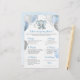 Dit schattige baby shower spel kenmerkt de blauwe en grijze jongen olifant met ballonnen en confetti. De controle van de punten op uw telefoon en voegt omhoog de punten toe. De rug kenmerkt olifant, en gepersonaliseerd met mam-aan-zijn naam en douchedatum op een zachte blauwe achtergrond van de waterverf. Gemakkelijk aangepast voor uw gebeurtenis door "Personalize" te klikken.