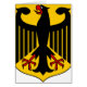 Armoiries de l'Allemagne. Les armoiries de l'Allemagne arborent un aigle noir (l'"aigle fédéral" du Bundesadler, anciennement "aigle impérial" du Reichsadler) sur un bouclier jaune (ou aigle affiché en sable). Il s'agit d'une réintroduction des armoiries de la République de Weimar (en vigueur 1919-1935) adoptées par la République fédérale d'Allemagne en 1950. La conception officielle actuelle est due à Tobias Schwab (1887-1967) et a été introduite en 1928.