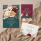 Voeg rijke herfstelegantie toe aan uw trouwtafel met dit gepersonaliseerde juweelkleurige huwelijksmenu. Met een diep smaragdgroene achtergrond en een dramatische bordeauxrode naamstrip, toont dit rustieke bloemige ontwerp romantische blozen, ivoor en wijnkleurige bloemen met gedroogde grassen - ideaal voor herfst- of winterfeesten. Elegante lettertypen en een strakke lay-out geven het een tijdloos maar modern gevoel. Pas de maaltijddetails en de gastennaam aan voor een mooi plaatskaartenalternatief bij uw receptie.