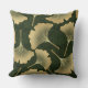 A refined seamless botanical pattern throw pillow featuring elegant ginkgo leaves illustrated in fine gold line art with gold accents, set against a deep emerald green background. This design blends timeless botanical beauty with a rich, modern color palette, creating a luxurious and sophisticated aesthetic.