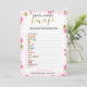 Een delicate moderne bloemige "Emoji Pictionary" bruidsfeest spel, het ontwerp bevat een roze en gouden bloempatroon. Deze kaart is gepersonaliseerd met de naam van de aanstaande bruid en de datum van het feest.
