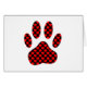 Empreinte de patte de chien avec motif de coeur. Dessin original en rouge et noir.