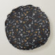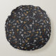 Deze ronde kussen zijn voorzien van handgeïllustreerde en antiek sleutels voor safes en sloten op een donkerblauwe achtergrond.