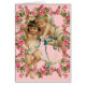 Une copie vintage d'ange a présenté ici sur un arrière - plan rose doux avec une frontière florale vintage.