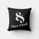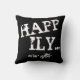 En ze leefden gelukkig ooit na kussen in zwarte kleur met witte scripttypografie aan de ene kant en zwart met witte typografie aan de andere kant. Kies alleen de grootte en de structuur.