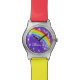 Montre colorée lumineuse de conception graphique d'arc-en-ciel. Idéal pour des enfants, des ados ou n'importe qui qui comme des couleurs lumineuses. Personnalisez avec votre propre choix de couleur de courroie et le nom, lit actuellement Olivia. Conçu par Sarah Trett. www.sarahtrett.com