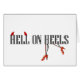 Expression, "enfer sur des talons" dans la police cosmopolite moderne noire et blanche avec des klaxons de diable rouge au-dessus du mot, "enfer," et jambes d'une femme portant les chaussures rouges de talon haut sous le mot, "talons."