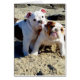 Een foto van twee Engelse Bulldog Puppies op de strand