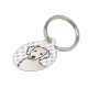Destei's originele cartoonillustratie van een schattige Goud Retriever rashond in Engelse crème vachtkleur. De achtergrond heeft een patroon van grijze hondenpootafdrukken. Aan de andere kant zijn er personaliseerbare tekstvelden voor een naam en voor het telefoonnummer van de eigenaar.