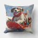 Engelse Setter Hond in Sledge Laat het Sneeuw Kers Kussen