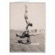 Cette carte comporte une photographie vintage de trois hommes beaux dans des maillots de bain exécutant tour d'adresse à trois voies stupéfiant sur la plage. Masquez à l'intérieur.