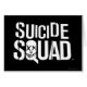 Logo Black and White Suicide Squad avec un crâne dans la lettre Q. Lettres blanches sur arrière - plan noir.