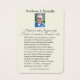 La Vierge adorant le Christ Enfant avec deux saints (La Vierge adorando al Niño Jesús con dos santos) 18ème siècle. St. Francis et St. Augustine sont ci-dessous. Tous les textes sont en espagnol et peuvent être modifiés. (Crédit : www.lacma.org) La traduction anglaise de la prière sur le dos dit : Oh Coeur pieux de Jésus toujours présent dans le sacrement, toujours plein d'amour brûlant pour les pauvres âmes captives dans Purgatoire, aie pitié de l'âme de celui qui vient à Toi avec humilité. Ne sois pas trop sévère dans Ton Jugement et laisse tomber quelques gouttes de Ton Précieux Sang dans les flammes dévorantes et fais, Seigneur pieux, que Tes anges conduisent l'âme de qui il crie vers un lieu de repos et de paix éternelle. Amen.
