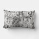 Dit werpkussen heeft een eclectisch abstract dat cirkels van zebrastrepen bevat. De kleuren variëren van grijs (of grijs) tot houtskool tot zwart.