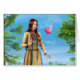 rendu numérique 3D d'une belle Américaine native avec un oiseau rose dans une forêt verte