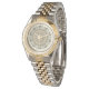 Unisex twee-toonenarmbandhorloge met een afbeelding van een mooie en lusteloze baan in het midden van , niet-uitende cirkels. Zie overeenkomende ronde charm, drop oorringen en rond ketting. Zie het volledige collectie van het Horloge van de Gemstenen & van de Medallions in de sectie van de ACCESSOIRES.