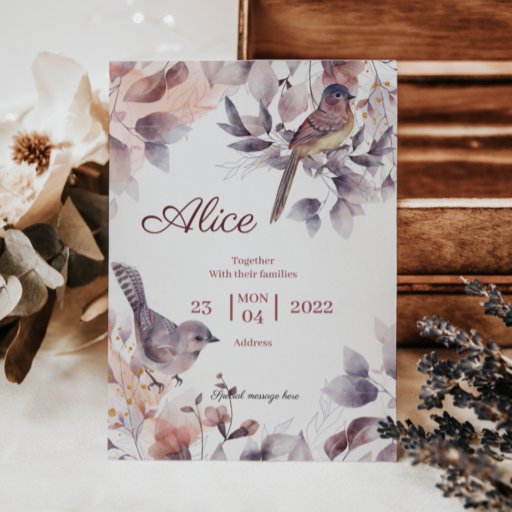 Étiquette À Bagage Oiseaux floraux baby shower nature violet et blanc
