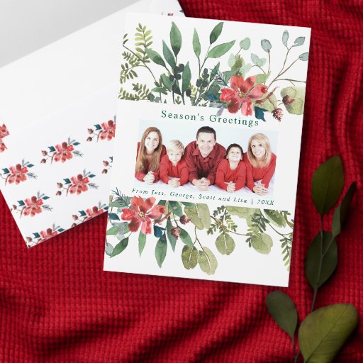 Rustic Watercolor Winter Greenery with Red FlowersConçu par E A M