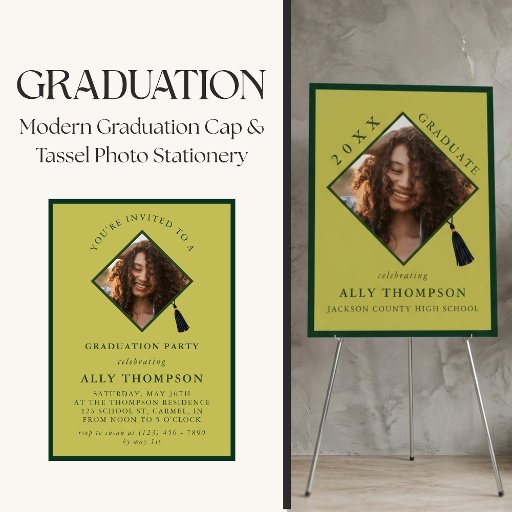 Modern Graduation Cap and Tassel Photo StationeryConçu par Molly H