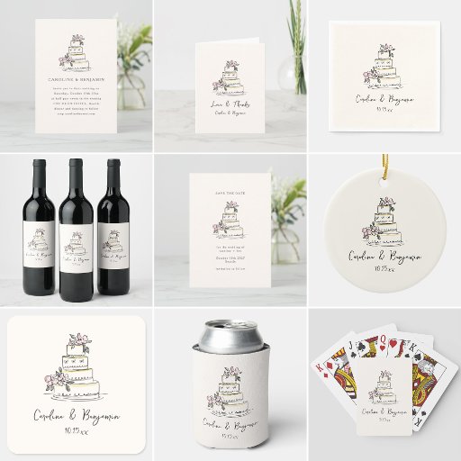 Sketched Blush and Cream Floral Cake Wedding SuiteConçu par Opal Ellery