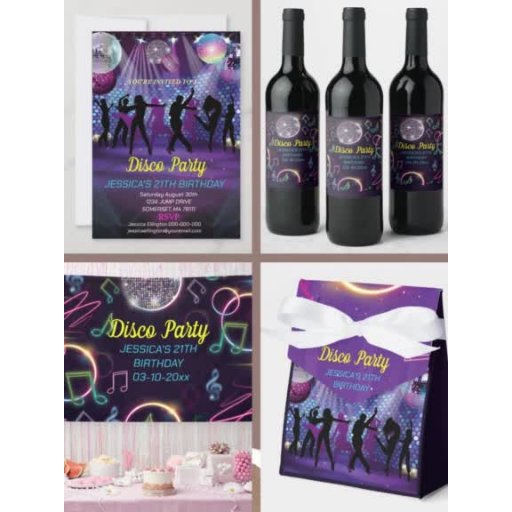 Étiquette Pour Bouteilles De Vin Neon Glow Disco Dance Anniversaire