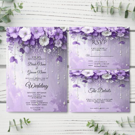 Purple Flowers with Dangling PearlsConçu par Z .