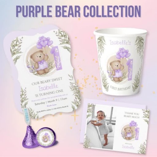 1st Birthday Girl | Purple BearConçu par Kate Eden