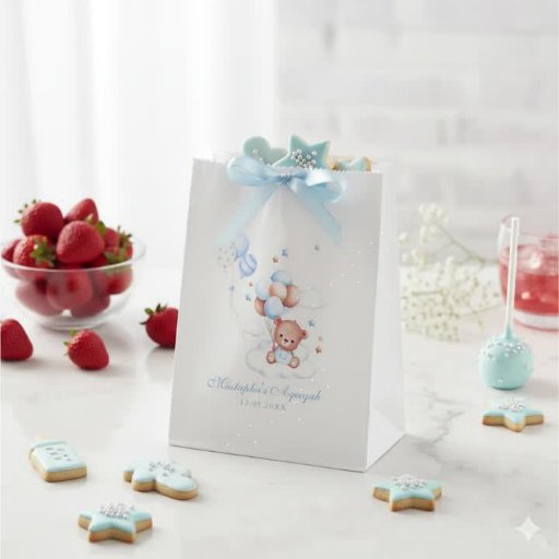 Celebrate your baby boy’s Aqiqah with these adorable star-shaped stickers featuring a cute teddy bear, soft clouds, and balloons. Perfect for favor bags, invitations, and party decorations. Personalize with your baby’s name and date to make your celebration extra special.