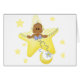 Les coups d'oeil adorables d'un bébé d'Afro-américain de l'intérieur d'une grande étoile jaune et d'un bon nombre d'autres étoiles et de lune l'entourent. Vous pouvez customiser ces invitations de baby shower sur place !