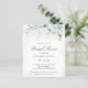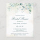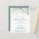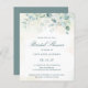 Elegant budget brudal doucheuitnodiging met eucalyptusbladeren en groenery met spugen van faux goudglitter bovenaan. Hieronder vind je de details van je evenement in donkergroen, boven een pastelwasbeurt. De achterkant is een overeenkomende schaduw van zacht blauw groen. Een eenvoudig, bijtend design dat geweldig is voor een botanische themafeest in de zomer. Deze goedkope bruiddoucheuitnodigingen worden op papier gedrukt voor een budgetvriendelijke optie.