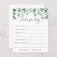 Laat je douchegasten deze schattige wensen voor baby op je baby shower invullen. Met een afbeelding van groen en eucalyptus. Pas de naam en de douchedatum van mama aan.